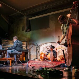 Im Spiel von Matthias Mainz auf präpariertem und unpräpariertem Flügel wechseln perkussive minimalistische Ideen mit stilistischen Ausbrüchen aus der Materialsammlung des 20.Jahrhunderts von Jazz, Minimal, Free Jazz und Neuer Musik. Sein Live-Processing des Flügels und der Impulse seiner Mitspieler:innen wirft als Counterpart einen elektronischen Bogen um den musikalischen Ideenfluss von SongOfMu.